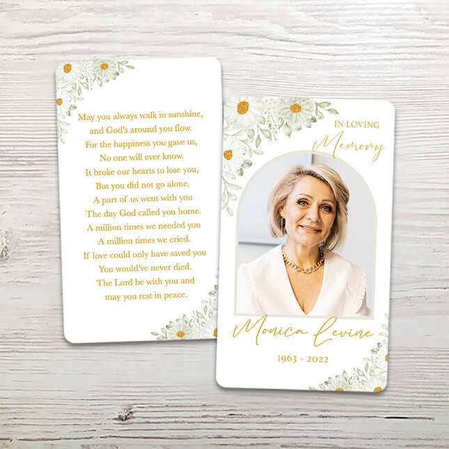 When you choose a memorial package at FuneralPrints.com, we make it as simple and compassionate as possible. Start by selecting the items to include in your package, quantities, and provide the basic details such as the loved one’s name, date of birth and passing, and a favorite photo. Our streamlined process is designed to ease the burden during difficult times.