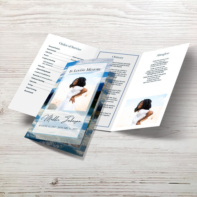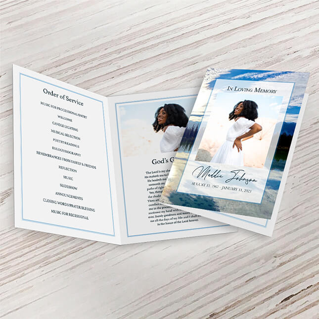 This coordinated memorial package includes personalized programs, prayer cards, bookmarks, and a memorial poster, making it ideal for funeral services, celebration of life ceremonies, or as obituary keepsakes. Each item can be fully customized with photos, names, and personal messages, allowing you to create a lasting and heartfelt tribute that reflects the memory of your loved one.