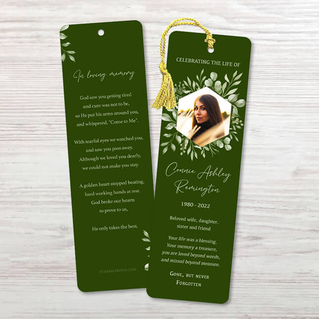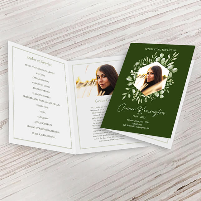 This coordinated memorial package includes personalized programs, prayer cards, bookmarks, and a memorial poster, making it a meaningful choice for funeral services, celebration of life gatherings, or as obituary keepsakes. Each item can be fully customized with photos, names, and personal messages, allowing you to create a lasting and beautiful tribute that reflects the cherished memory of your loved one.