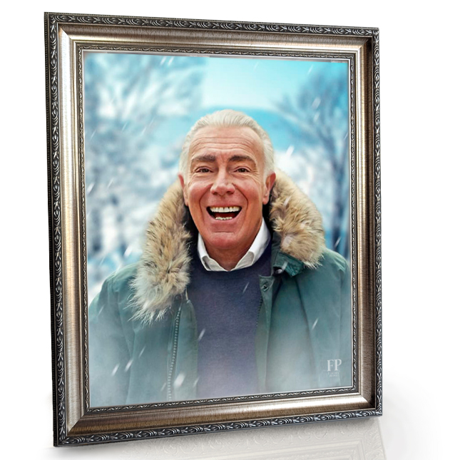 Framed Memorial Portrait - Winters Embrace Lifescapes Background