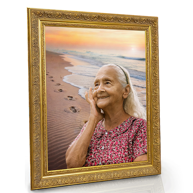 This framed memorial portrait conveys hope, peace, and remembrance, providing family and friends a meaningful way to honor a life rooted in faith. The Footprints of Faith design evokes comfort and assurance, reminding us that we are never alone on life’s journey. More than just a portrait, it becomes a lasting tribute that blends spiritual grace with heartfelt remembrance.