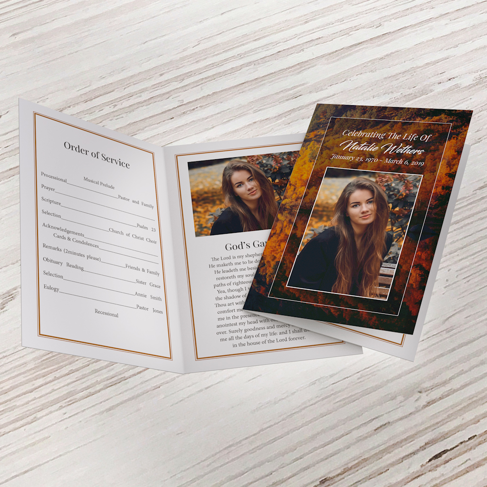 Create your programs with ease on our simple design platform! Or give us a call and one of our team members would be happy to design it for you for a design fee of $40.00. Simply provide the content and requested layout, and our designers will take care of the rest! All proofs are sent and confirmed via email.