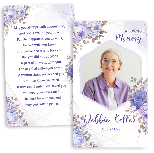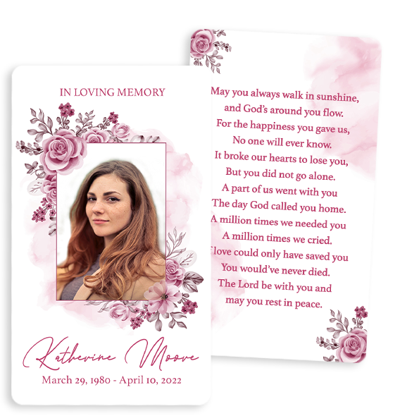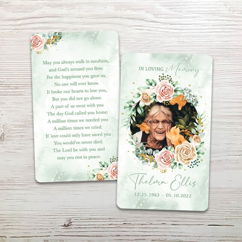 Remembrance cards for the memorial service can feature poems, verses, and prayers