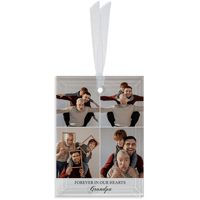 We are honored to help you create the beautiful keepsake of your loved one. Custom ornaments will print on glass and features smooth beveled edges. A white sheer hanging ribbon and white sheer drawstring pouch are included in your order. Customize it with your own photo and text, and this beautiful glass ornament will be great way to decorate your tree. It makes a great stocking stuffer or as a gift. Our team of designers are ready to customize these for you any way you like. Connect with our team 1-800-774-4313 8am - 10pm EST 7 days a week