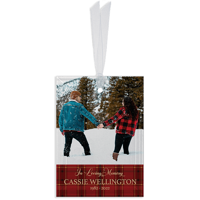 We are honored to help you create the beautiful keepsake of your loved one. Custom ornaments will print on glass and features smooth beveled edges. A white sheer hanging ribbon and white sheer drawstring pouch are included in your order. Customize it with your own photo and text, and this beautiful glass ornament will be great way to decorate your tree. It makes a great stocking stuffer or as a gift. Our team of designers are ready to customize these for you any way you like. Connect with our team  1-800-774-4313  8am - 10pm EST  7 days a week