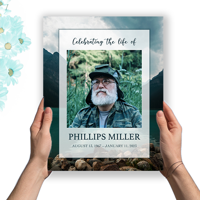 The Mountain Sea Memorial Package is a breathtaking tribute that captures the calm and strength of nature’s most inspiring landscapes. Featuring stunning mountain and ocean imagery, this package includes customizable programs, prayer cards, a memorial poster, and matching keepsakes. Personalize each piece with photos, names, dates, and messages that reflect your loved one’s adventurous and peaceful spirit.