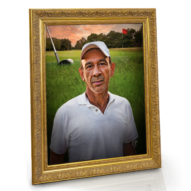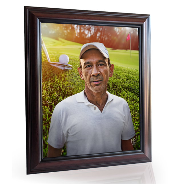 This framed memorial portrait conveys tranquility, reflection, and love, offering family and friends a comforting way to remember their loved one. The Emerald Fairway design evokes calm and continuity, celebrating the connection between earth and sky. More than a portrait, it becomes a timeless tribute that blends natural beauty with heartfelt remembrance, preserving cherished memories for generations.